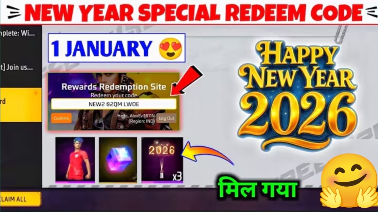 Free Fire New Year Special Code 2026: नए साल में फ्री डायमंड, स्किन और रिवॉर्ड पाने का शानदार मौका